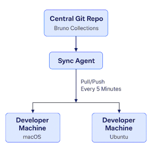 To make Bruno usable at scale, we created a cross-platform auto-sync system that transparently keeps every developer’s local Bruno collections in sync with a Git repository.